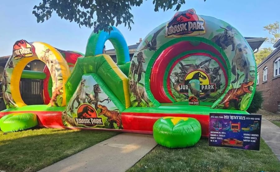 We deliver within a 50 mile ratio from 60633. Book our 13ft x 22ft Jurassic Park Themed Combo Bounce for fast delivery and professional setup. Reserve early for weekend events.