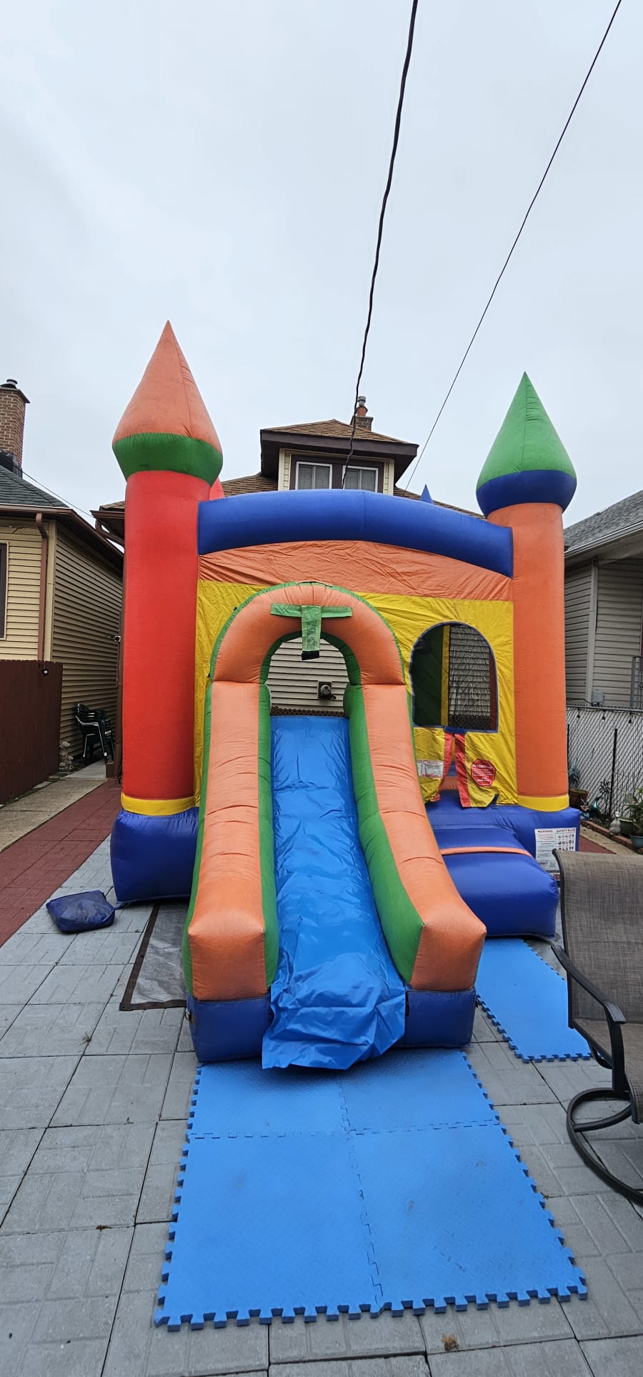 Bounce houses 14ft x 14ft Colorful Bounce Castle in Chicago,Indiana — a vibrant, reliable choice for birthday party, backyard celebration, park events, and more. This roomy 14ft x 14ft bounce castle includes a front slide for added excitement. Easy setup. Sturdy construction. Perfect for kids ages 3–12. 🏰✨