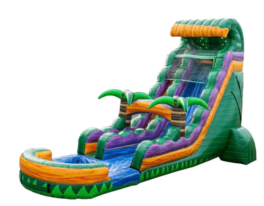 Bring bold fun to your next event with the TROPICAL 22ft WATER SLIDE. This 22ft water slide is built for teenagers and adults, yet remains kid-friendly and safe. Fast setup. Eye-catching tropical design. Big thrills without the hassle.